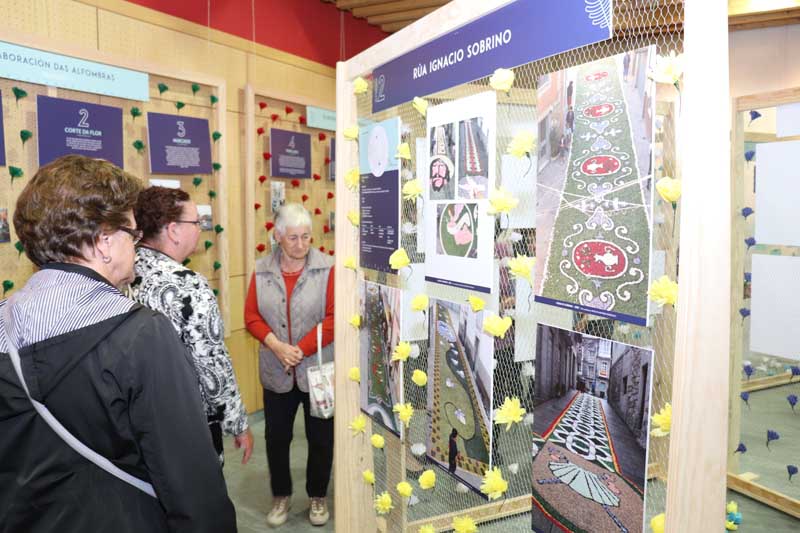 Nesta exposición abórdase a temática dende tres puntos de vista, por unha banda o aspecto histórico, repasando os antecedentes e datas sinaladas sen as cales non se entendería a grandeza desta festividade, por outra banda o Organizativo, mostrando como se organizan e elaboran as alfombras e xa para finalizar o aspecto dos percorridos, representando as rúas onde se fan as alfombras, os rezos e bendicións e demais celebracións asociadas a este evento.